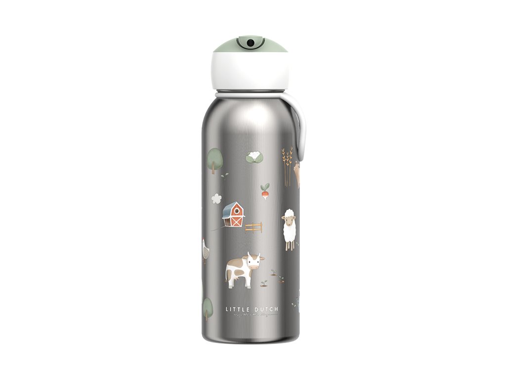 Termofľaša Little Dutch Farma 350 ml spoľahlivo udrží nápoj teplý aj studený, nech už ste kdekoľvek. Vyrobená je z vysoko kvalitnej dvojstennej nerezovej ocele, ktorá udrží nápoj až 9 hodín teplý a 12 hodín studený.