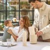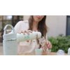 Termoska je potiahnutá jemným protišmykovým materiálom, ktorý sa príjemne drží, a jej elegantný pastelový vzhľad perfektne zapadne k ostatným produktom značky Miniland.