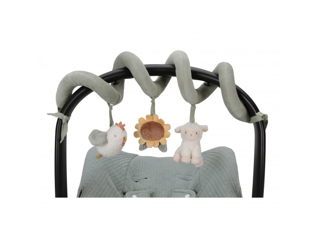 Plyšová špirála Little Dutch s farma motívmi a rôznymi textúrami. Jemne cinká a stimuluje zmysly bábätka. Od narodenia.