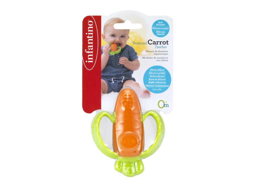 Prvé zúbky môžu byť náročné, ale toto rozkošné Infantino silikónové hryzátko v tvare mrkvy prinesie bábätku okamžitú úľavu a veľa radosti. 🥕✨