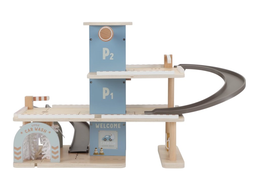Táto krásne spracovaná hračka ponúka dve poschodia parkovania, umývačku, nabíjaciu stanicu pre elektromobily a pristávaciu plochu pre vrtuľník.