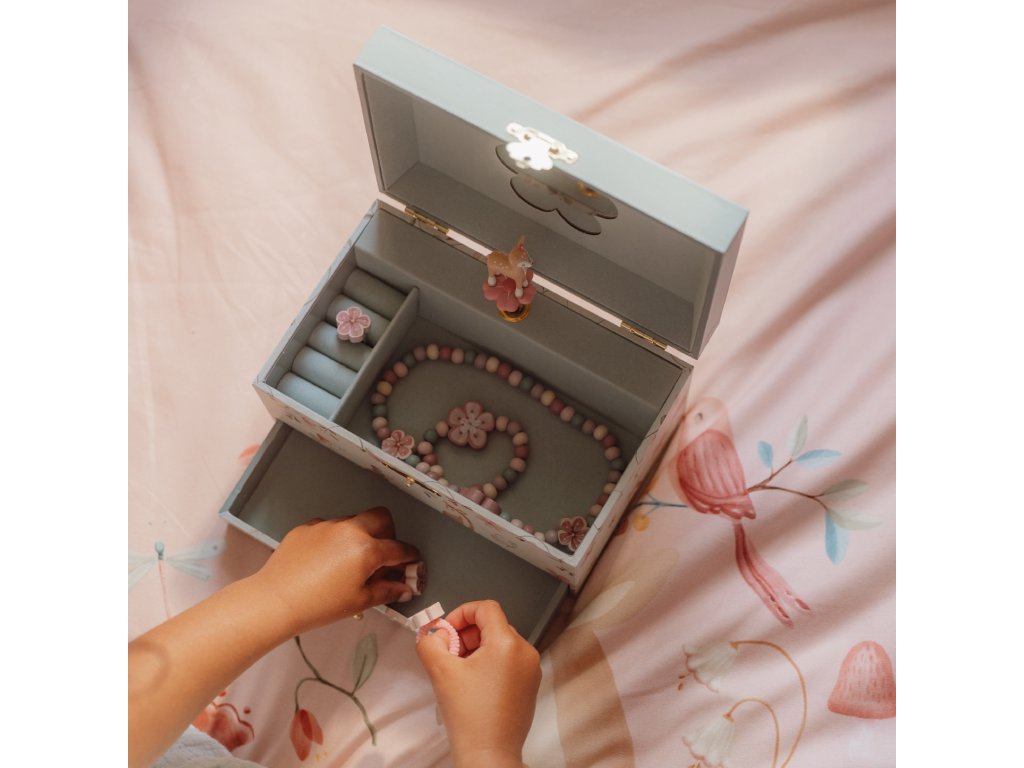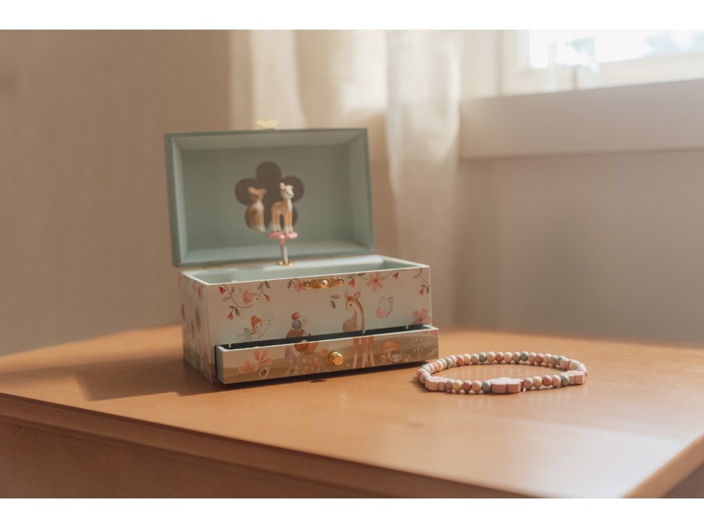 Hudobná šperkovnica Little Dutch Forest Friends je nádherný doplnok aj hračka, ktorá spája eleganciu, jemnosť a detskú fantáziu.