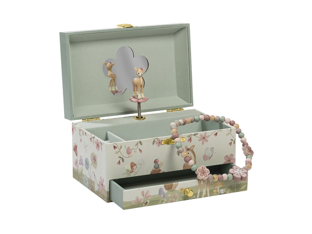 Krásna hudobná šperkovnica Little Dutch – Forest Friends poteší každú malú parádnicu.