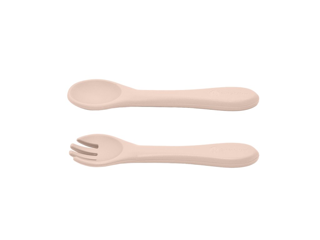 Silikónový príbor TAKE&MATCH Súprava pozostávajúca z vidličky a lyžičky je celá vyrobená z potravinárskeho silikónu bez obsahu BPA. Vďaka tomu môže vaše dieťa jesť príborom teplé aj studené jedlá. Vďaka pružnému silikónu je príbor ideálny pre citlivé ďasná malého dieťaťa.