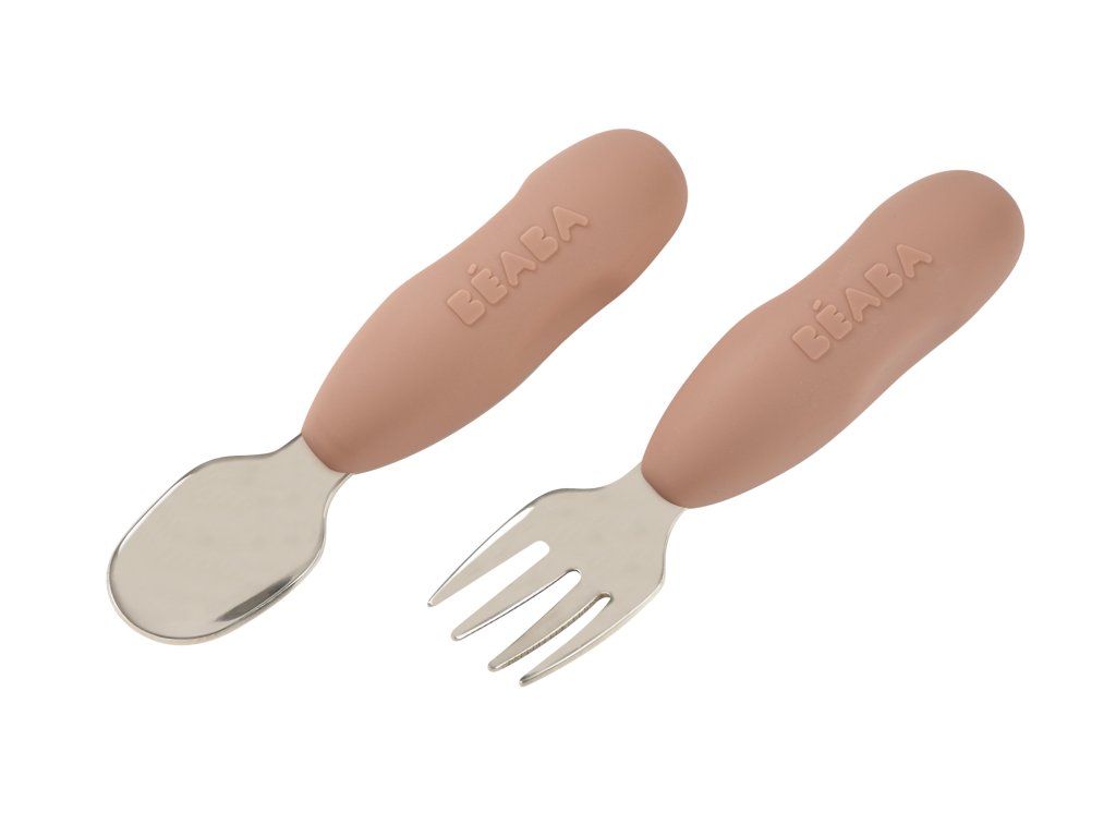 Beaba Prvý trénovací príbor Praline je 2-dielna sada, ktorá uľahčí deťom od 10 mesiacov prechod od kŕmenia lyžičkou na používanie vlastného príboru. Sada obsahuje lyžičku a vidličku z kvalitnej nerezovej ocele s ergonomickou plastovou rukoväťou, ktorá je prispôsobená pre malé detské ručičky.