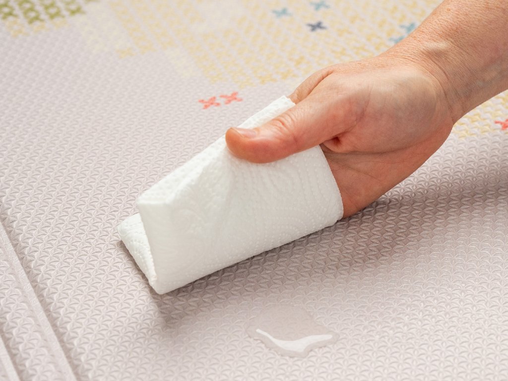 Prémiová penová podložka s rozmerom 140 × 140 cm poskytuje dostatok priestoru pre bábätko aj rodiča a vďaka svojej odolnosti a vodeodolnému povrchu je ideálna pre každodenné používanie.